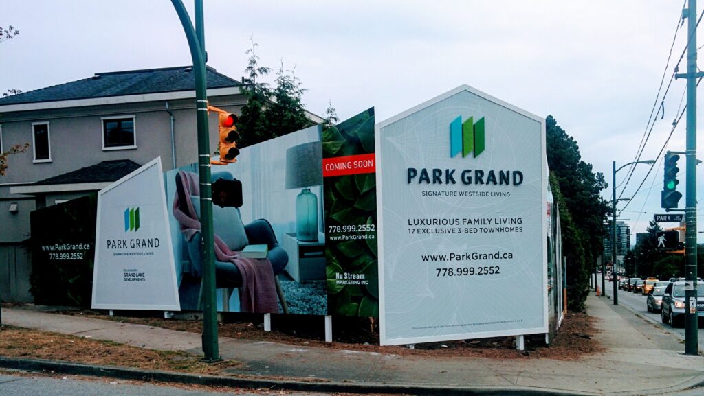 High quality site signage and construction hoarding is a cost effective way to advertise your brand directly to the people that matter. Regardless of whether it’s a new construction site or renovation signage, advertise your project while hiding the mess using beautiful hoardings constructed of: