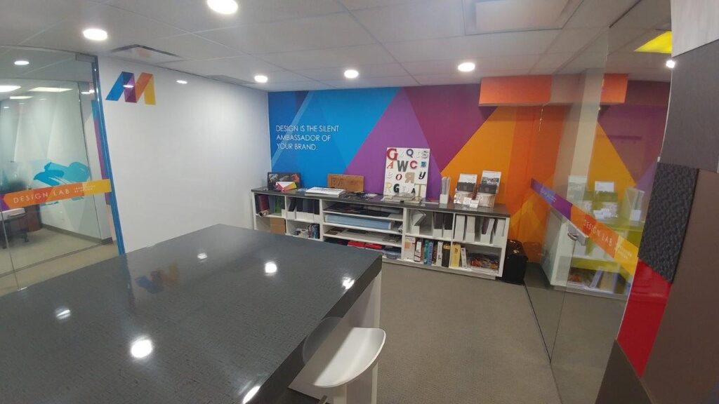 Use graphics to add value to your most important corporate assets – employees and brand. Improve your office walls, windows, and floors with over 900 architectural finishes as well as custom printed wall coverings and glass finishes. A local leader in wide format printing solutions, Multigraphics offers a new and innovative approach to using graphics in your office space. Let us help you revitalize your office space with creative and motivational environmental graphics.