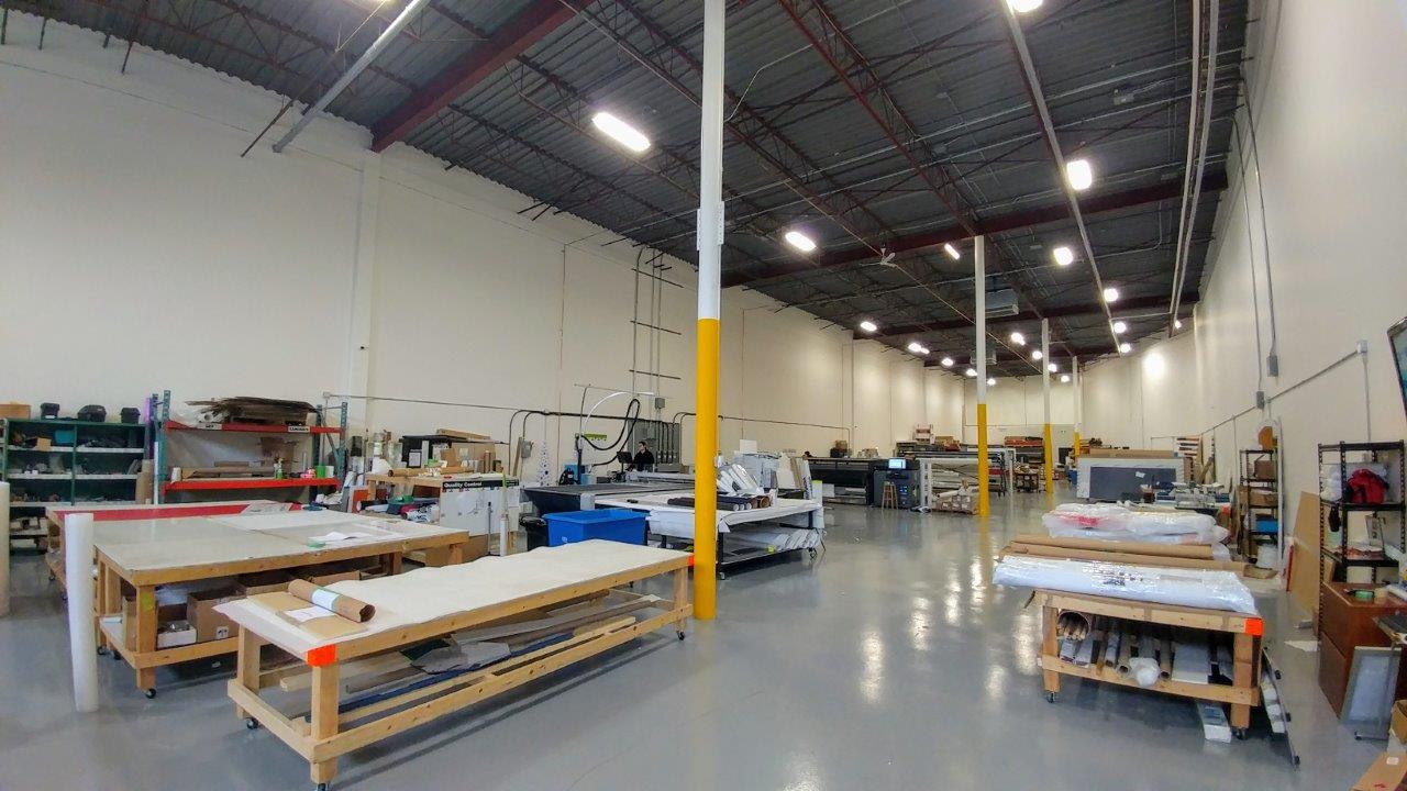 We can print graphics of up to 16 feet in width and 150 feet in length, all without a seam. In addition, we have a 5 by 10 FT flatbed printer that can produce large rigid graphics.
